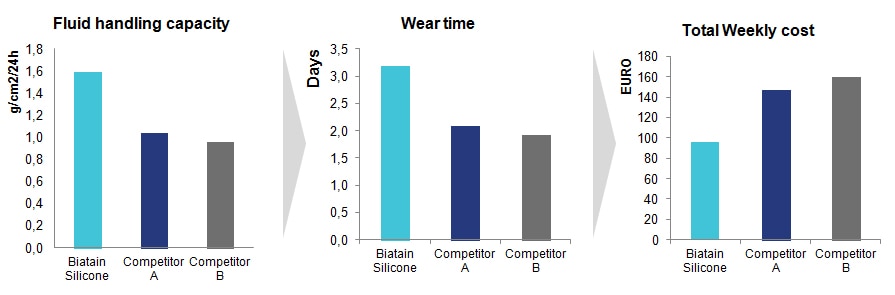 Treating a wound requires materials – dressings, cleansers and so on – but also nursing time and hospitalization. Studies show that the total cost of wound care treatment can be broken down into 15–20% for dressing materials, 30–35% for nursing time and >50% for hospital costs (1).