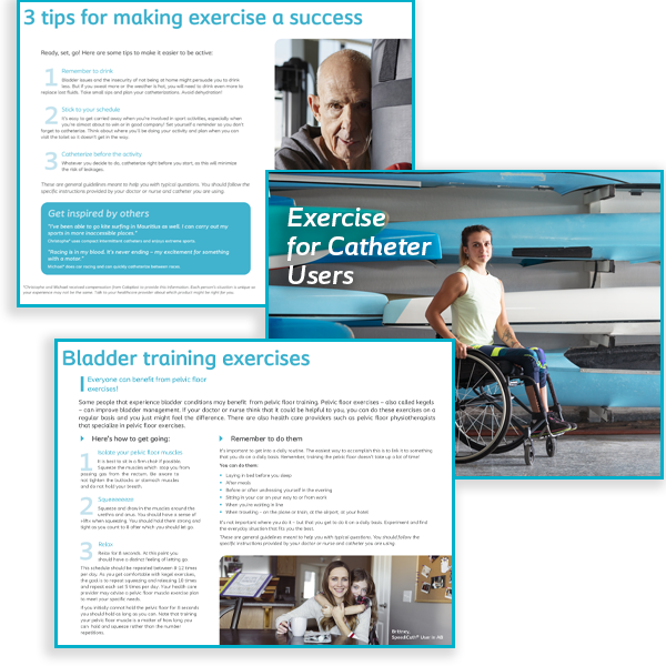 Does using an intermittent catheter make you feel like you can’t be active? If so, this guide might benefit you. Using a catheter does not mean that you can’t lead an active lifestyle. In this PDF resource, you will learn tips and tricks that may help make exercise a success.