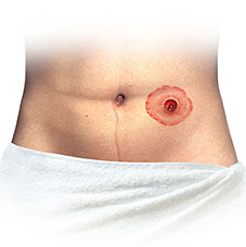 Healthy skin around your stoma looks the same as the skin on the rest of your stomach.