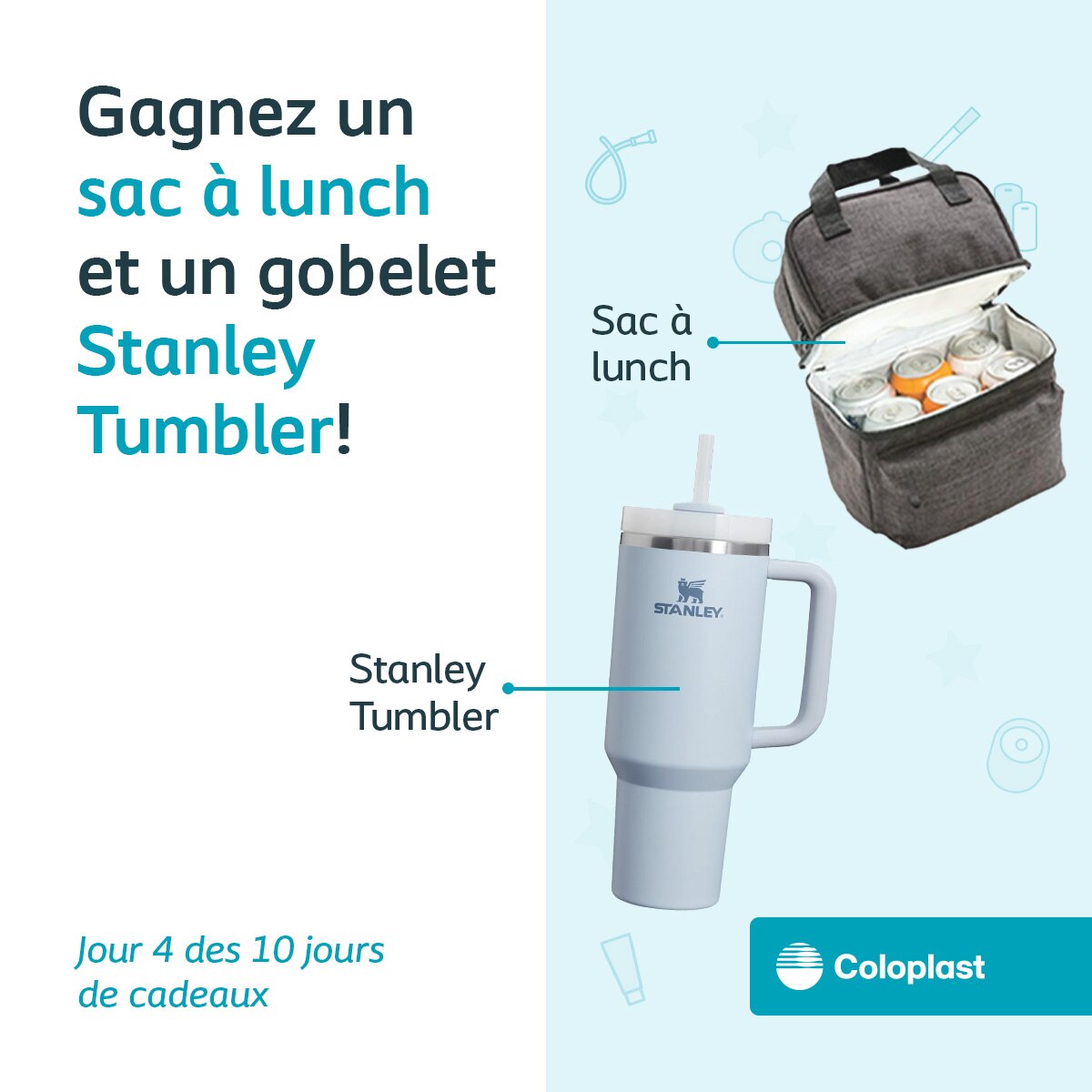 Parmi ces cadeaux, on retrouve l’adorable lapin en peluche, le sac à lunch, les sacs de voyage Coloplast, et bien plus encore! Nous avons hâte de vous donner en retour en cette période des Fêtes et de vous remercier pour votre soutien continu et votre confiance envers les produits et services Coloplast. Assurez-vous de suivre notre compte sur Instagram @coloplast.ca. Bonne chance!