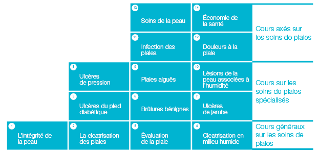 Le programme CWI propose plusieurs cours de formation médicale portant sur une variété de sujets relatifs aux soins des plaies. Chaque cours a été mis au point en étroite collaboration avec des experts internationaux en soins des plaies, et le contenu a été revu par des pairs et approuvé par l’Association européenne du traitement des plaies, l’EWMA (European Wound Management Association).