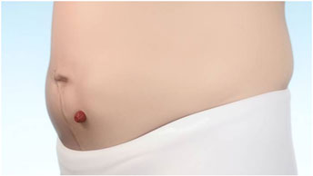 Une stomie est de couleur rouge. En effet, il s'agit d'une muqueuse, identique à la muqueuse à l'intérieur de la bouche. Il n’y a aucune sensibilité au niveau de la stomie, de sorte qu'elle n’est absolument pas douloureuse au toucher.  Il se peut que la stomie saigne légèrement lorsqu'on la nettoie, particulièrement au début. Il s’agit d’une réaction normale qui devrait disparaître rapidement.